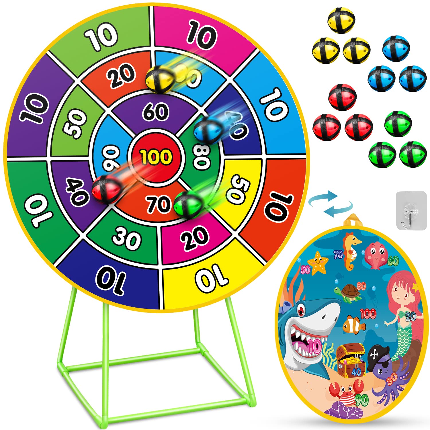 Amazon Com Dioju Dart Board For Kids Double Sided Dartboard With 12 Sticky Balls Floor Stand Indoor Outdoor Sport Toys For 3 4 5 6 7 8 9 10 11 12 Year